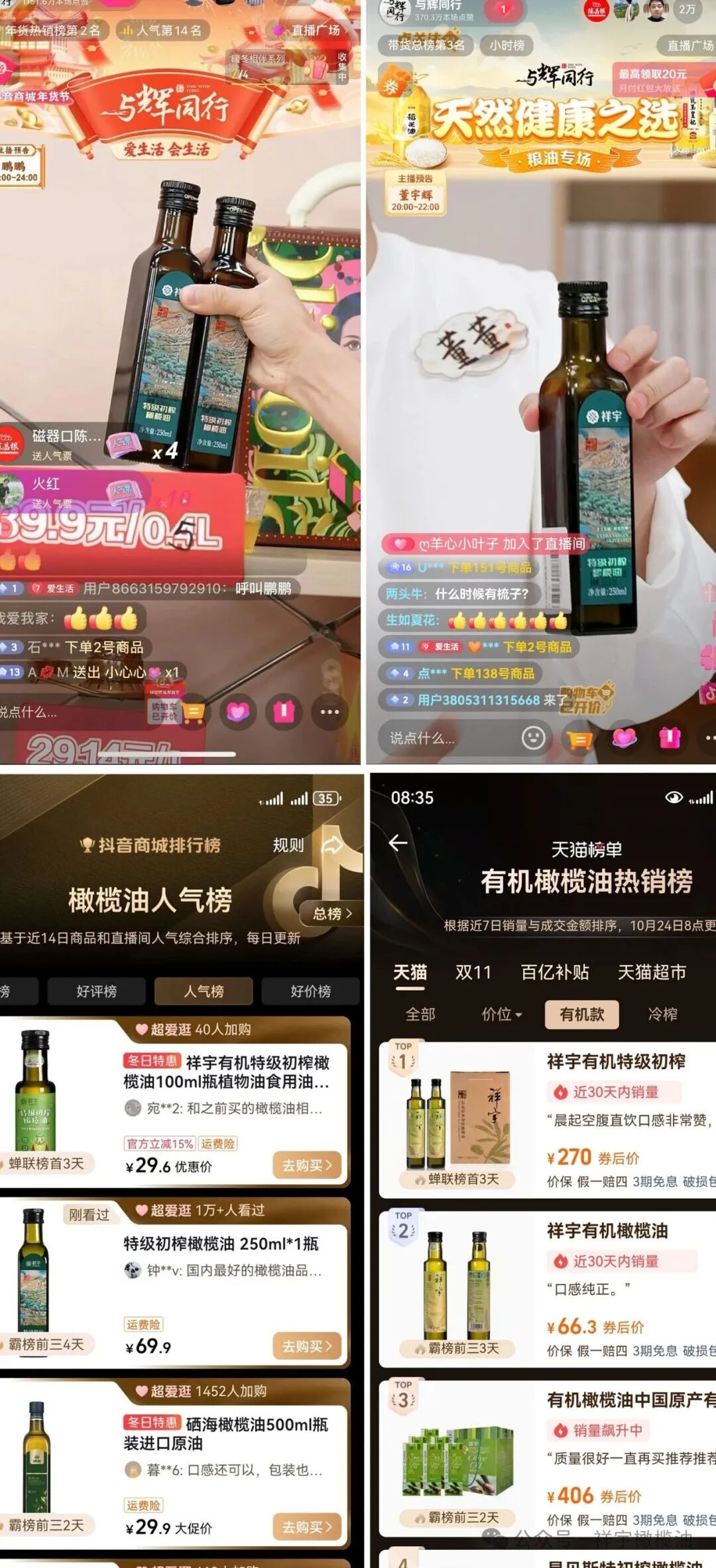 天貓、抖音有機(jī)橄欖油類目銷量第一